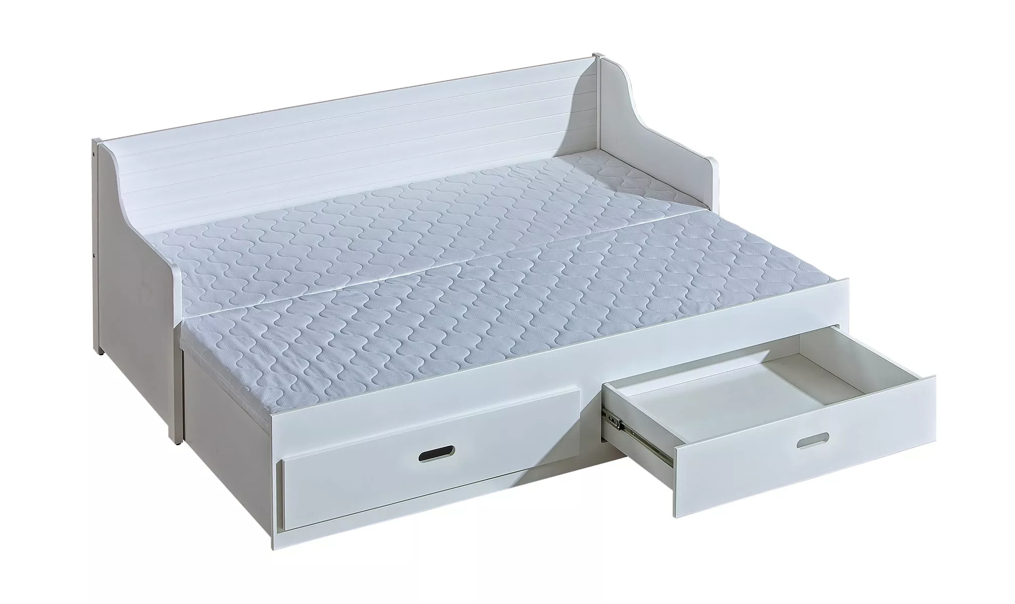 Rozkládací dětská postel 80x200 ETOKA je dokonalým řešením do menších pokojů. Postel disponuje 2 praktickými šuplíky pro uložení ložního prádla nebo hraček. Je vyrobena z borovicového masivu, což ji poskytuje dostatečnou odolnost, pevnost a používání po mnoho let.