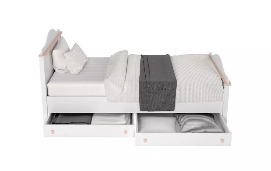 Dětská postel s matrací a šuplíky 90x200 LEGUAN - bílá / růžová