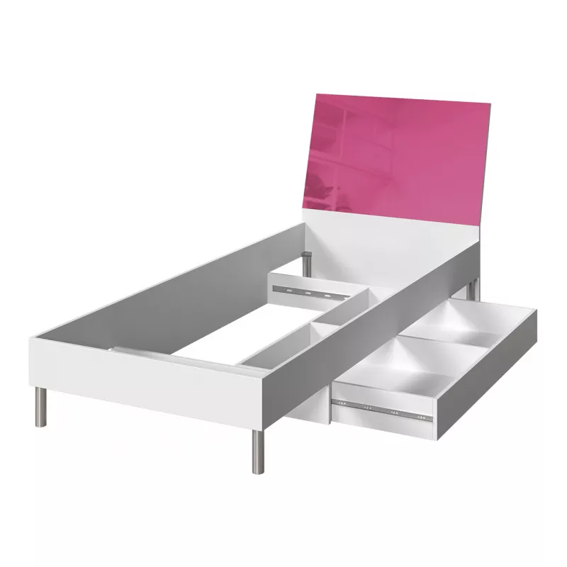 Dětská postel s matrací 90x200 GORT 2 - bílá / lesklá růžová
