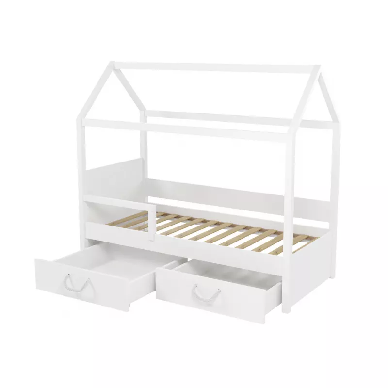 Postel SONTRA 2 s jednoduchým designem dětského domečku je skvělým dekorativním doplňkem do pokoje a podněcuje kreativitu dítěte. Je vyrobena výhradně z masivní borovice a vyniká vysokou stabilností a životností. Oceníte jistě úložný prostor v podobě 2 šuplíků a zábranu, která chrání dítě před pádem z postele.