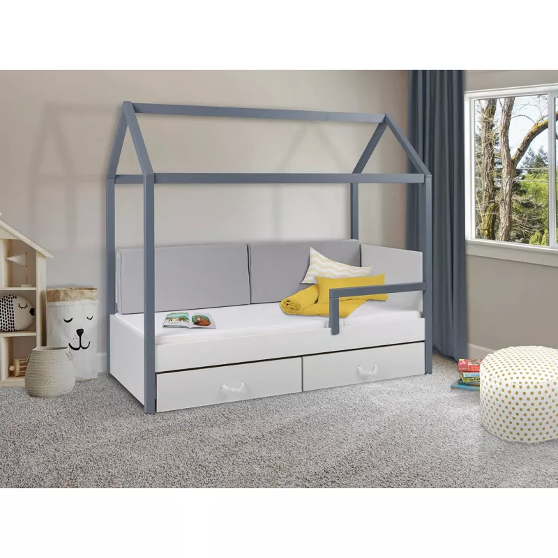 Dětská postel domeček se zábranou 90x200 SONTRA 2 - bílá / grafitová
