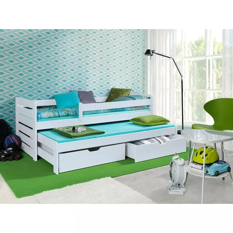 Patrová postel GERA je vynikajícím řešením také do menších dětských pokojů. Horní lůžko je vybaveno zábranou, která chrání dítě před pádem z postele. Nechybí ani praktický úložný prostor v podobě 2 zásuvek. Postel je vyrobena z borovicového masivu ošetřeného vrstvami laku, což dodává posteli lepší odolnost proti poškození či poškrábání.