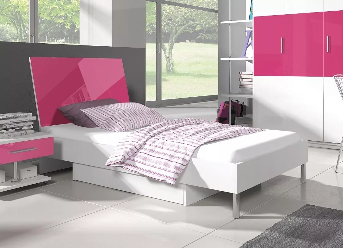 Postel do dětského pokoje RENI 3 - 90x200, bílá / růžová