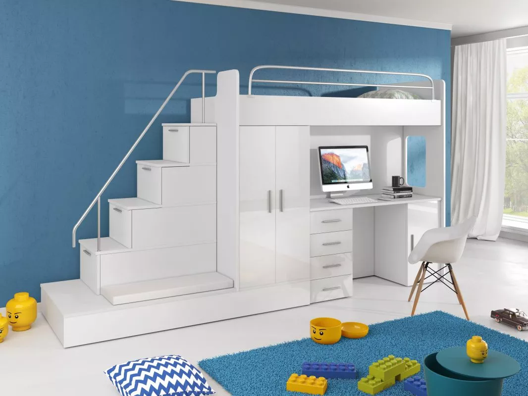 Bojujete v pokojíčku s nedostatkem prostoru? Vyřešte to elegantně pomocí dětské patrové postele RENI. Díky své všestrannosti nabídne vašemu dítku psací stůl, šatní skříň i spoustu úložného prostoru zabudovaného ve schodišti.