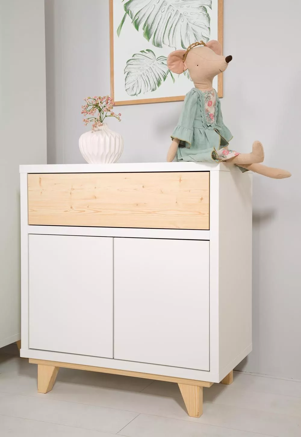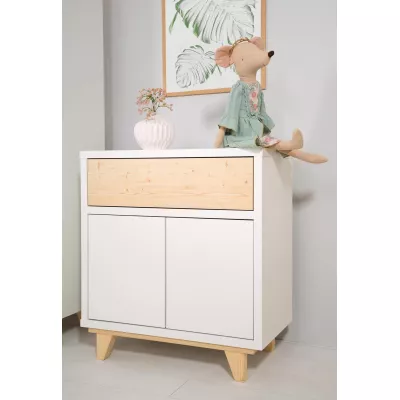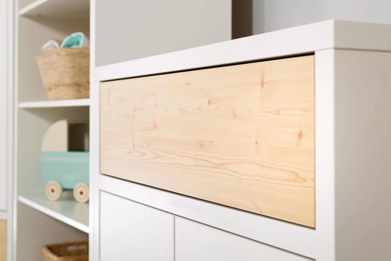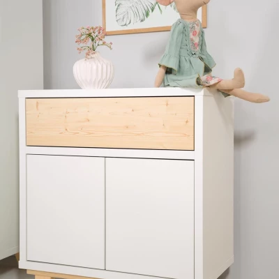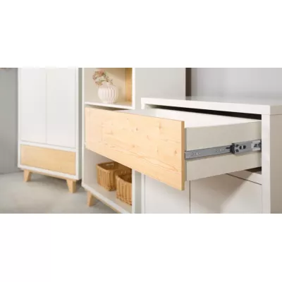 Kombinovaná komoda PEMA moderního stylu se hodí do každého dětského pokoje. Je to prostorná komoda pro úschovu oblečení i školních potřeb.