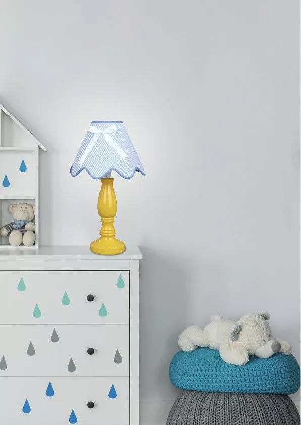 Vneste do dětského pokoje hravou a příjemnou atmosféru se stolní lampičkou LOLA, která krásně poslouží při večerním čtení i jako jemné světlo na nočním stolku! Žlutá konstrukce doplněná modrým látkovým stínidlem vytváří veselý barevný kontrast, který rozjasní každý dětský prostor a dodá mu přátelský tón. Určeno pro žárovku s paticí E14 a maximálním výkonem 40 W. Pro úsporu el. energie doporučujeme osadit úspornou LED žárovkou. Krytí IP20 značí vhodnost použití v interiéru.