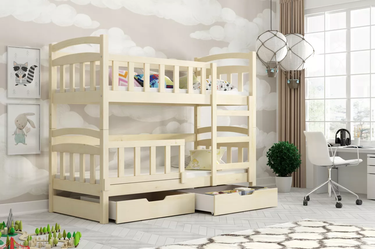 Patrová postel 75x180 GRETE se zábranou - borovice