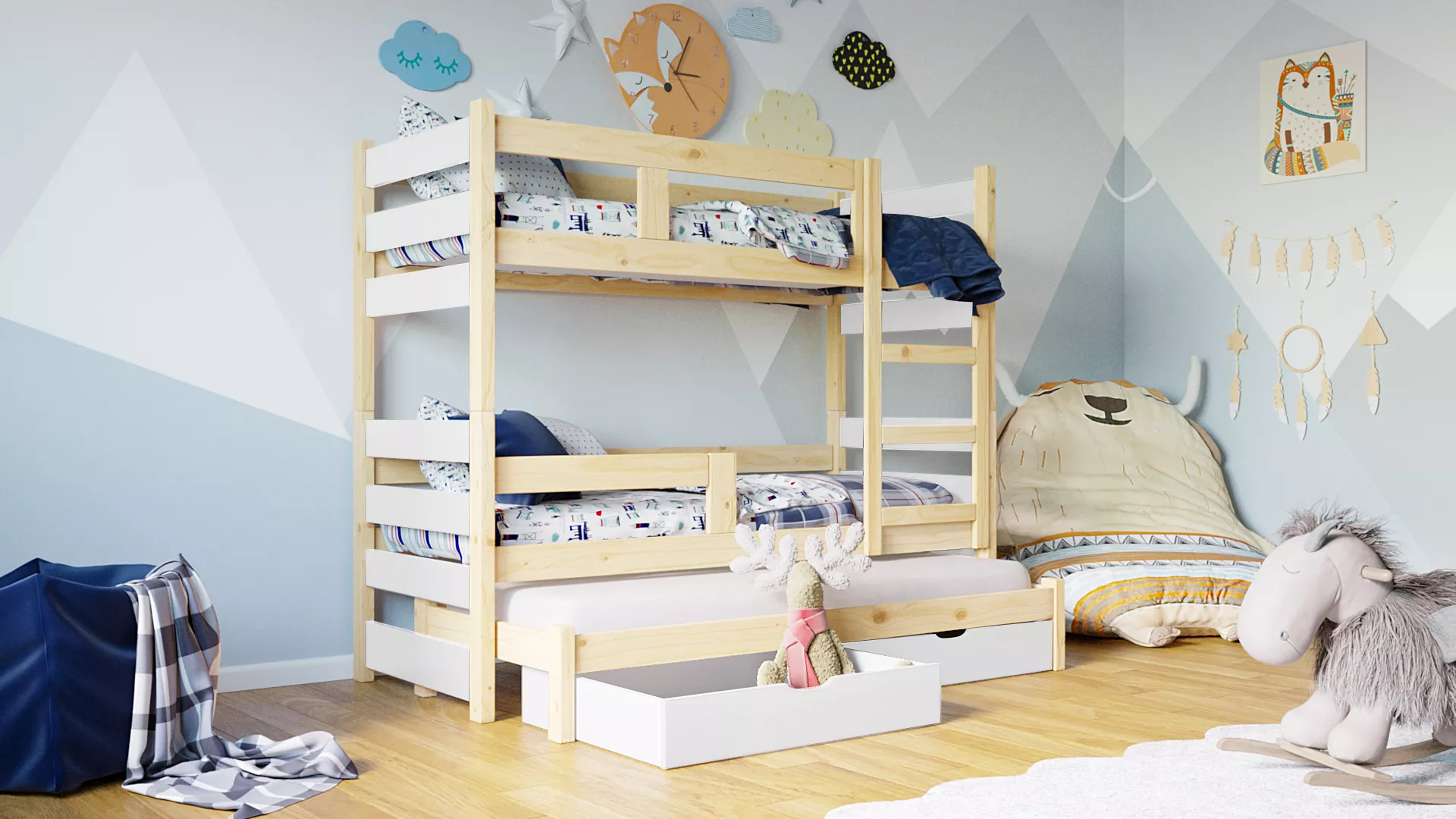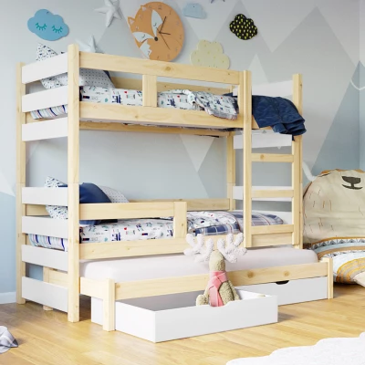 Patrová postel 75x180 SIGNE s přistýlkou - borovice / bílá