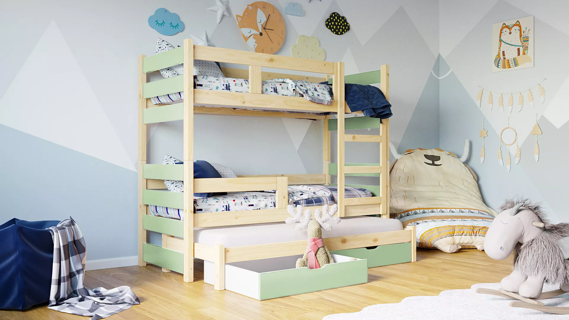 Patrová postel 75x180 SIGNE s přistýlkou - borovice / mátová