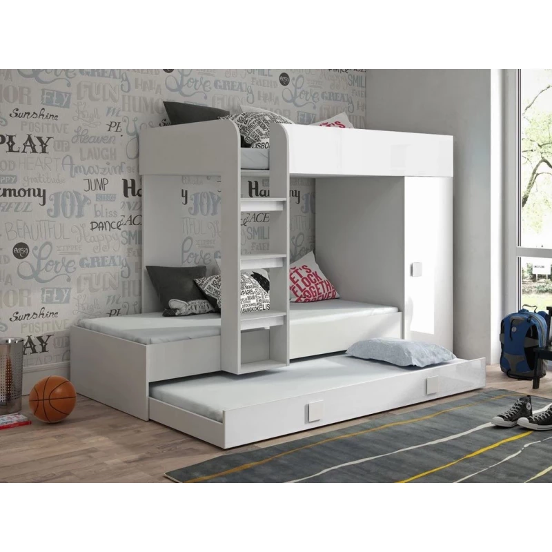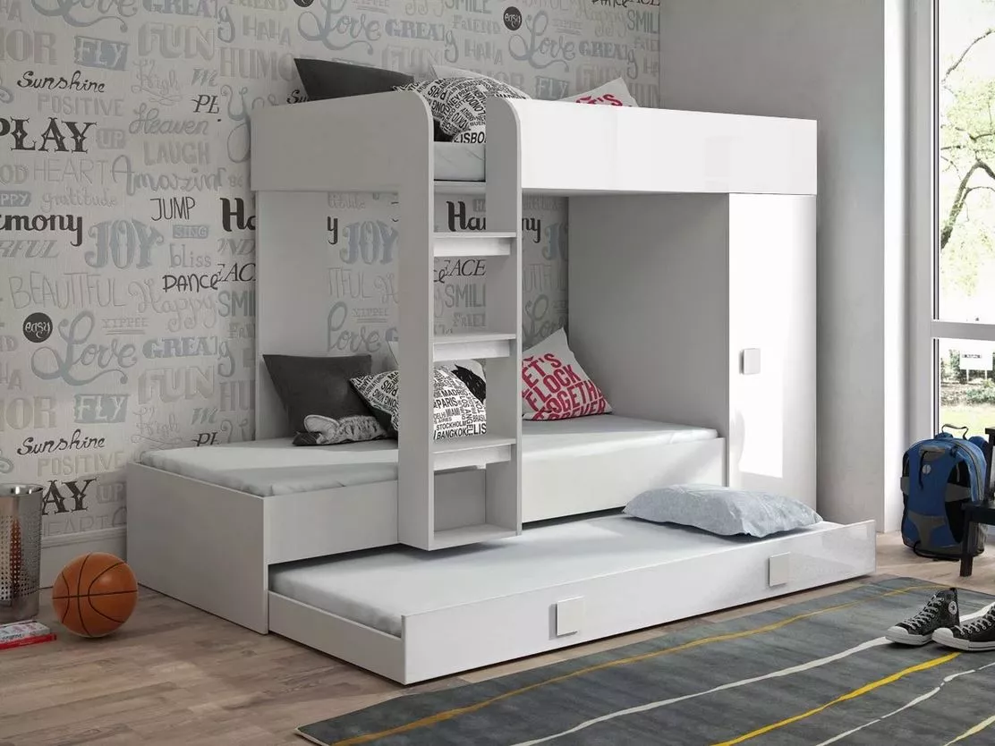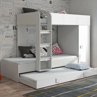 Dětská patrová postel s přistýlkou 90x200 LANKA 2 - bílá / lesklá bílá
