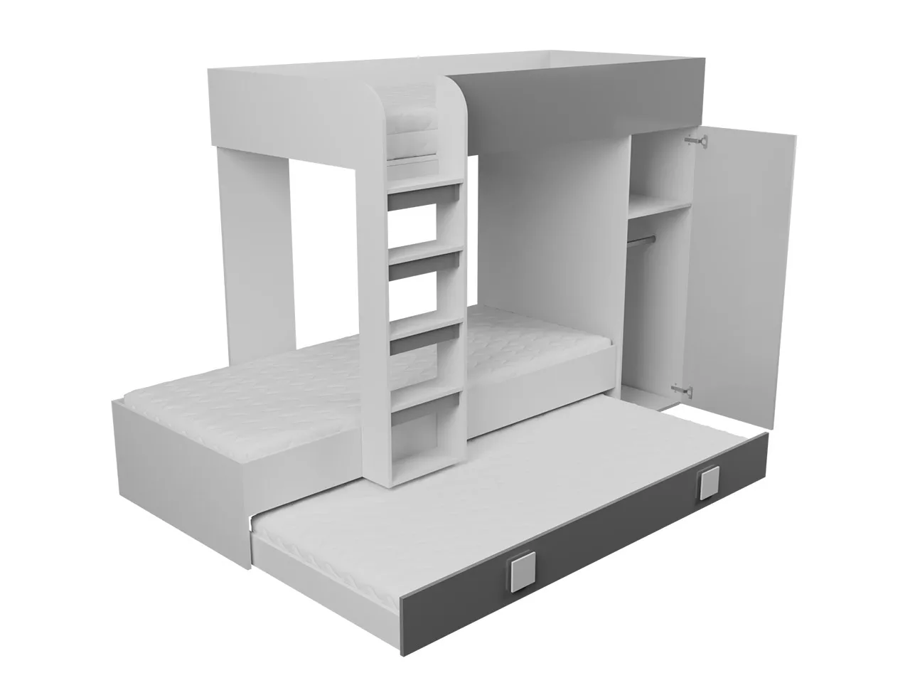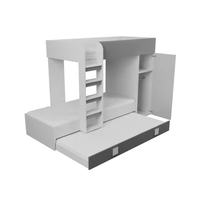 LANKA je patrová postel nové generace, určená speciálně do malých dětských pokojů. Kromě standardního horního a spodního lůžka je tento model vybaven diskrétně ukrytou výsuvnou přistýlkou. Postel je vybavena také šatní skříní, která výrazně zvyšuje funkčnost.