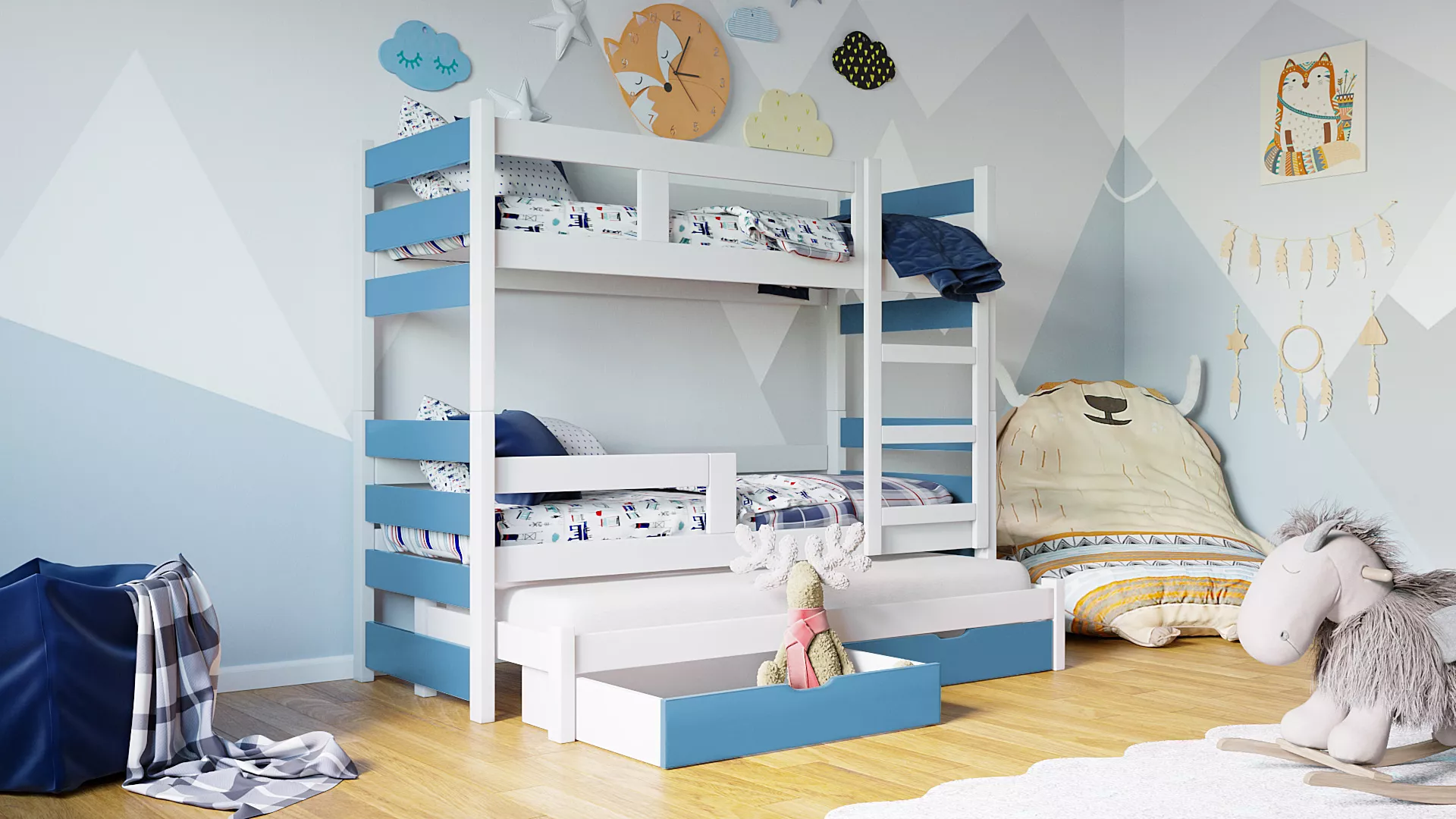 VÝPRODEJ - Patrová postel 75x180 SIGNE s přistýlkou - bílá / modrá