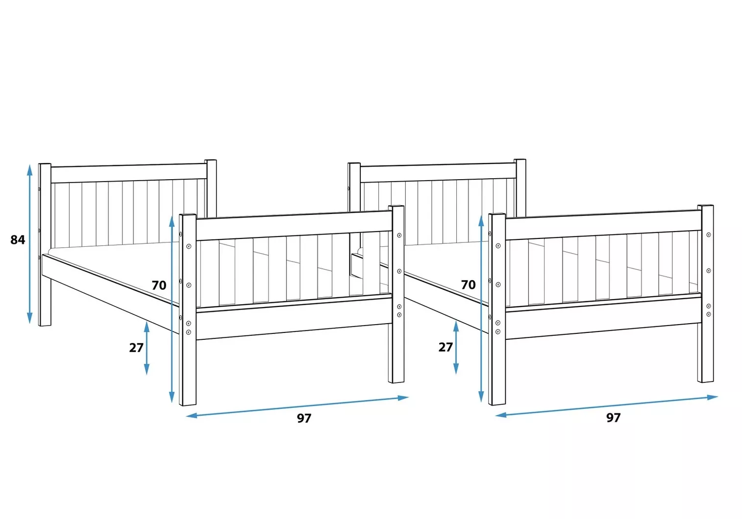 Dětská patrová postel 90x190 EUNIKA osloví zejména ty, kteří pro své dítě hledají moderní design a kvalitu. Základem konstrukce postele je masivní rám z borovicového dřeva, který posteli dodává bezpečnou stabilitu. Postel lze rozložit a používat jako 2 samostatná lůžka.