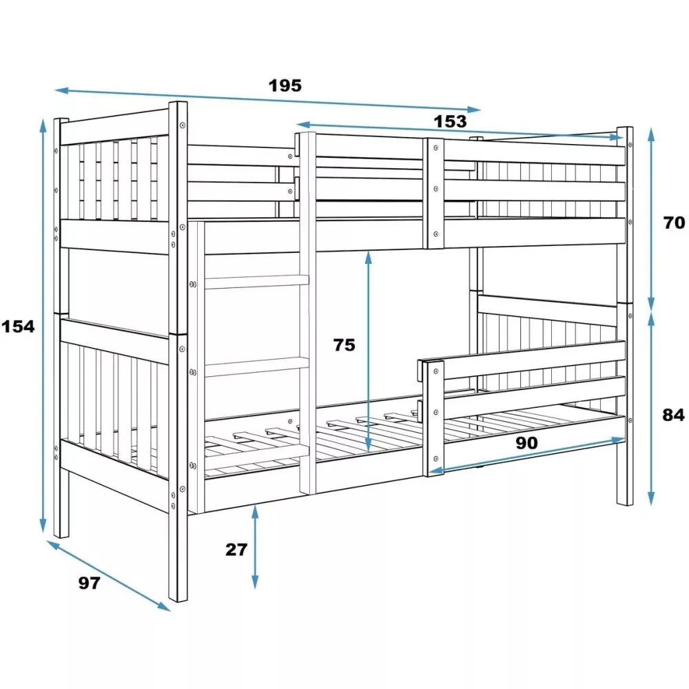 Dětská patrová postel 90x190 EUNIKA - borovice