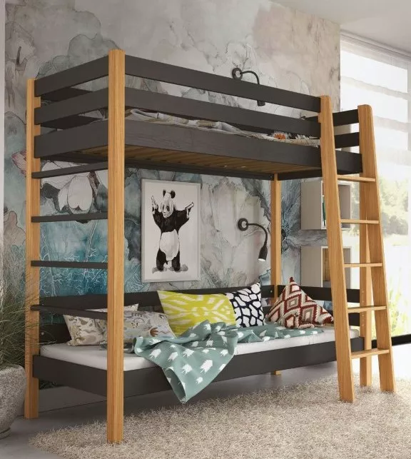 Patrová postel pro děti 90x190 CORNA - dub / černá