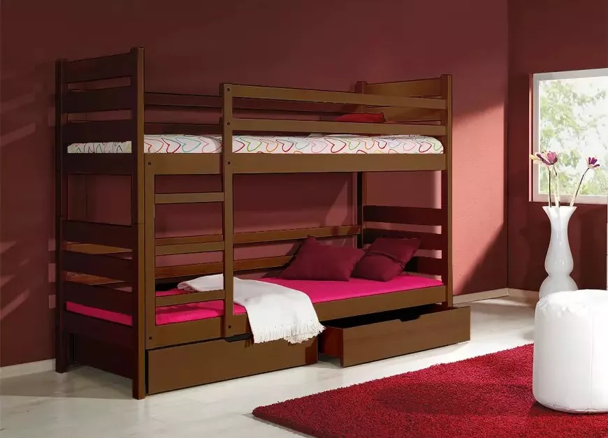 Dvoupatrová postel 80x190 MARIONE nabízí 2 praktické šuplíky pro úschovu lůžkovin nebo hraček. Postel bude ideální volbou do každého menšího dětského pokoje, kde potřebujete ušetřit místo. Praktické zábrany zvyšují bezpečnost postele.