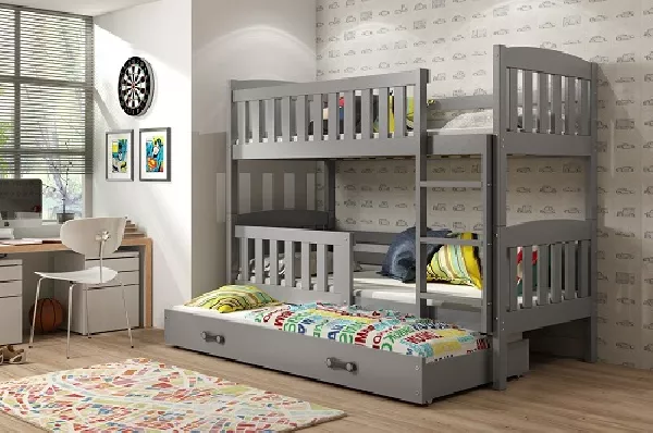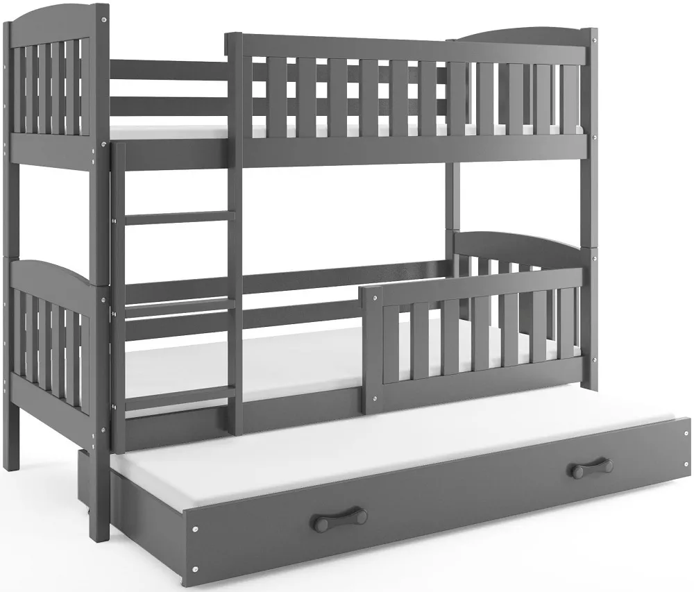 Dětská patrová postel s přistýlkou a matracemi 90x200 BRIGID - grafit