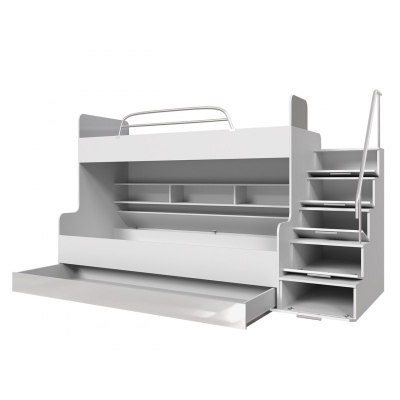 Dětská patrová postel s roštem 90x200 GORT - bílá / šedá, levé provedení