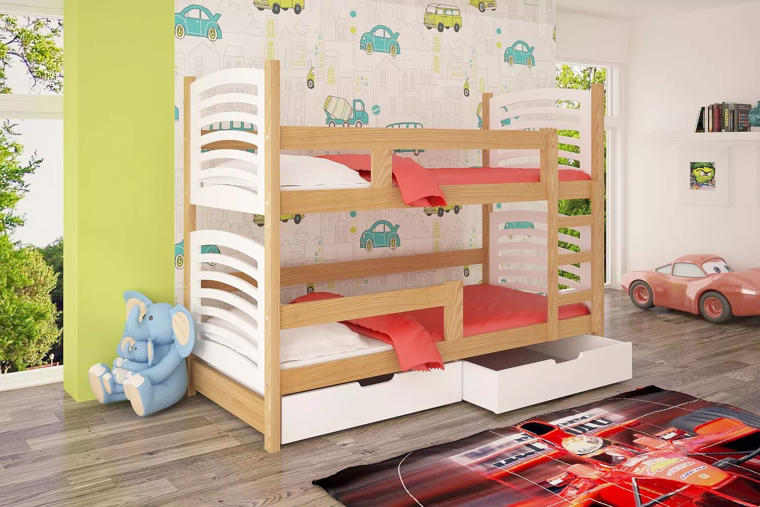 Pokud máte v dětském pokoji málo prostoru, patrová postel bude ideálním řešení pro spaní dvou sourozenců. Výsuvné šuplíky poskytnou úložný prostor na peřiny a polštáře, popřípadě dětské hračky. Palanda je vyrobena z výběrového borovicového masivu, který díky kvalitnímu zpracování zaručuje posteli dostatečnou pevnost, stabilitu a dlouhou životnost.