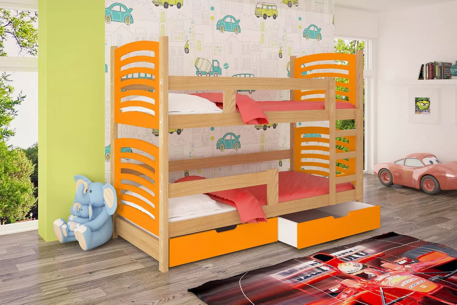 Patrová postel s úložným prostorem KALA 2 - 75x180, borovice / oranžová