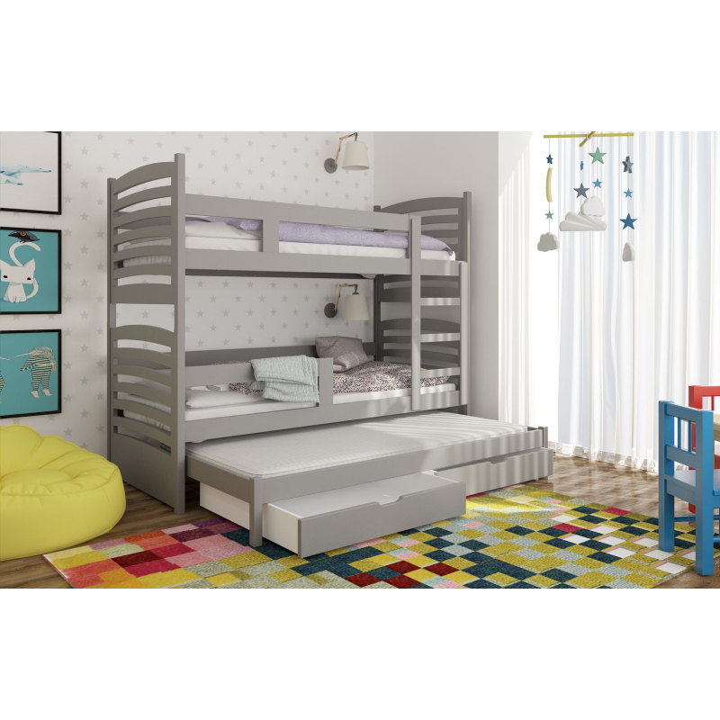 Dětská patrová postel pro tři KALA 2 - 75x180, šedá