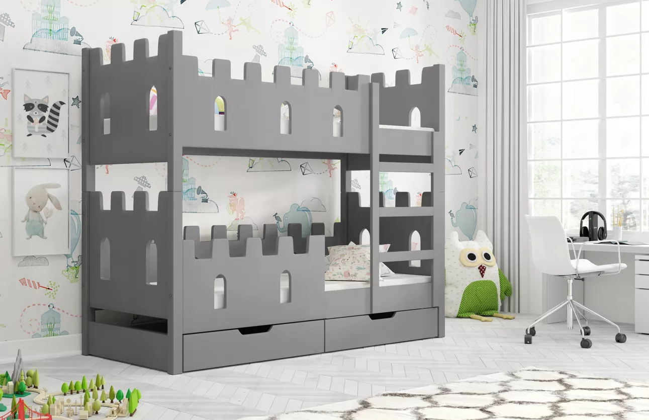 Dětská patrová postel 75x180 BELLE 1 se hodí do všech dětských pokojů. Postel nabízí 2 ložné plochy a 2 zásuvky.