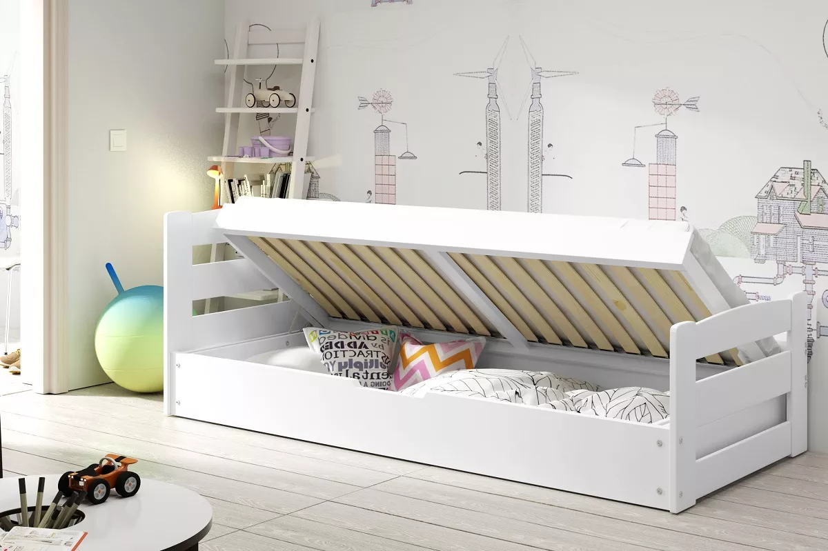 VÝPRODEJ - Dětská postel s úložným prostorem a matrací 90x200 LYDIE - bílá