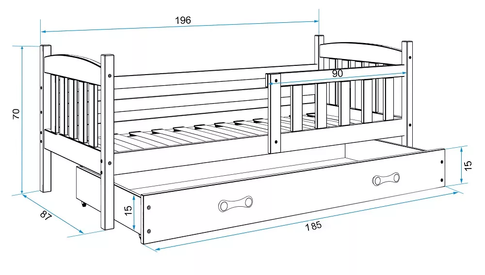 - ložná plocha: 80x190 cm