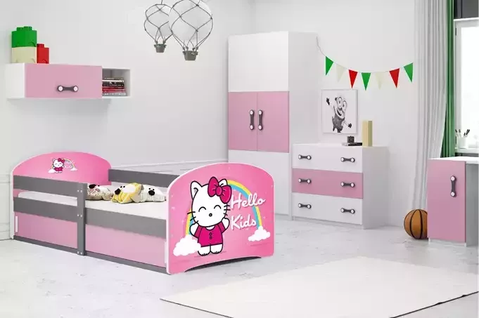 Dětská postel s úložným prostorem s matrací 80x160 KOČKA 1 - grafit