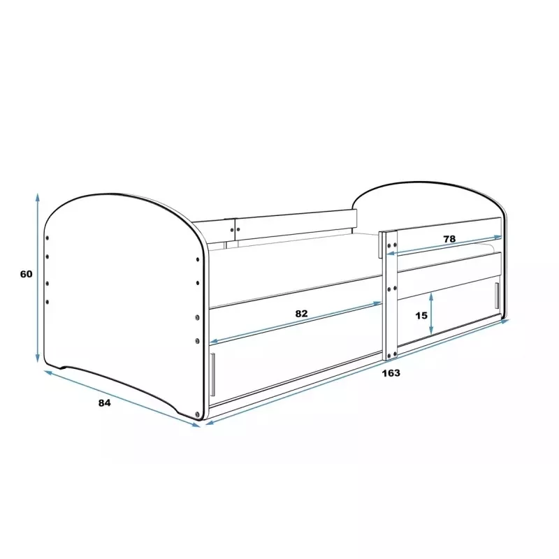 Dětská postel je vybavená úložným prostorem, který slouží například k ukládání peřin, hraček či oblečení. Základem konstrukce postele je masivní rám z borovicového dřeva, který posteli dodává bezpečnou stabilitu. Postel se vyrábí jako oboustranná a podle potřeby ji lze při montáži složit jako pravostrannou nebo levostrannou.