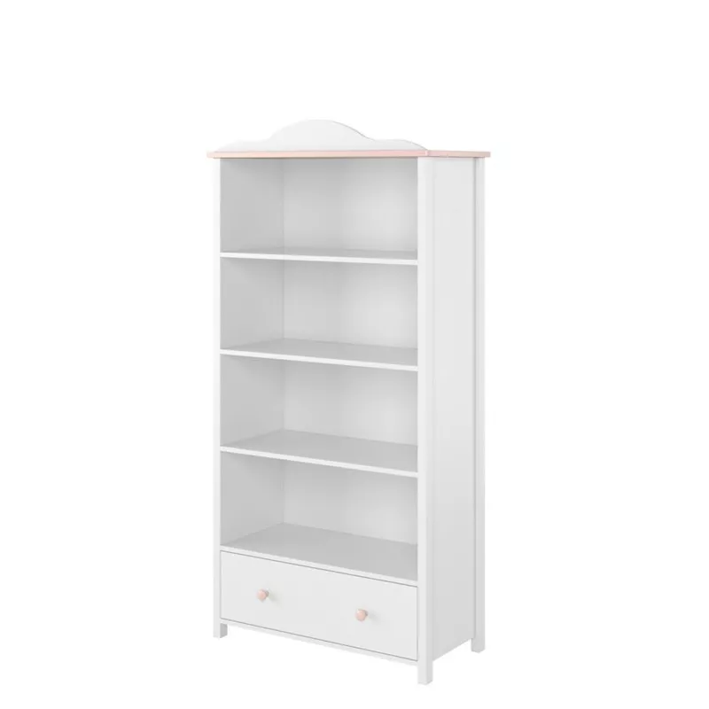 Knihovna LEGUAN je jedním z prvků půvabné kolekce dětského nábytku, která se vyznačuje detaily v jemné růžové barvě. Knihovna se skvěle hodí do dívčího pokoje jako místo pro ukládání hraček nebo knih. Kromě zásuvky nabízí knihovna také 4 otevřené police.
