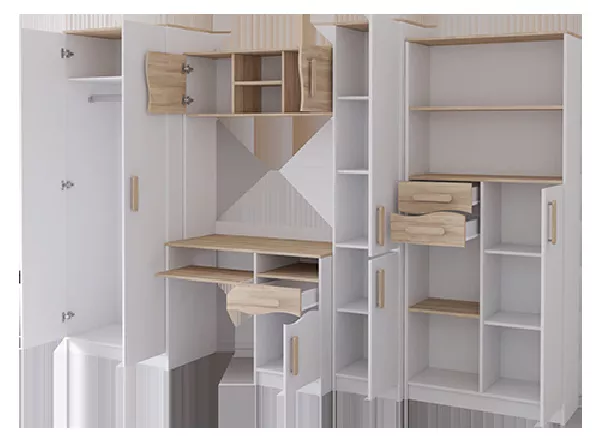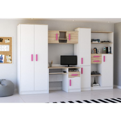 Přinášíme vám nabídku kompletní dětské sestavy. Jde o typizované sestavy dětského nábytku s možností volby jednotlivých elementů. Dětské pokoje jsou nejčastěji sestaveny z dětské postele, nočního stolku, šatní skříně, komody, psacího stolu, knihovny a různých regálů a polic. Produkty jsou vyrobeny buď z masivu nebo z kvalitního lamina. Dětský nábytek z masivu je sice finančně nákladnější, avšak použité borovicové dřevo má svůj půvab a tradici. Naproti tomu dětské pokoje z lamina dodáváme v moderních designech, s možností volby jednotlivých modulů. Nepřeberné množství úložných prostorů v podobě různých šuplíků, zásuvek, polic a odkládacích ploch zvyšuje atraktivitu a praktičnost sestav nábytku do dětských pokojů. Vybírejte dětské sestavy pro vaše potomky a uděláte jim radost.