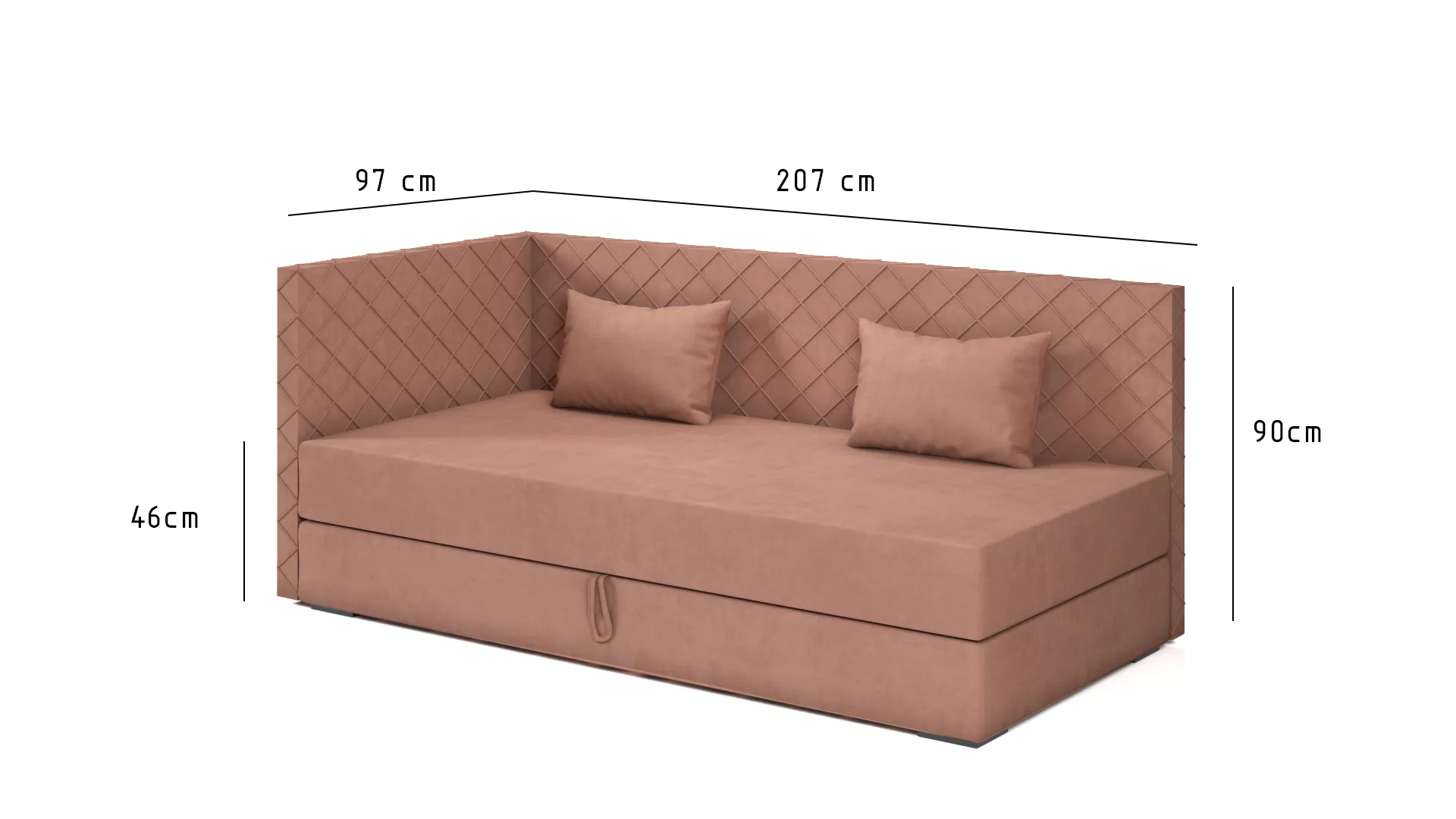 Válenda s úložným prostorem 90x200 ALAMO 4 má čalouněné čelo, které chrání stěnu před znečištěním. Ve velkém úložném prostoru schováte lůžkoviny nebo sezónní oblečení. Válenda je potažená látkou příjemnou na dotek, což zvyšuje komfort každodenního používání.