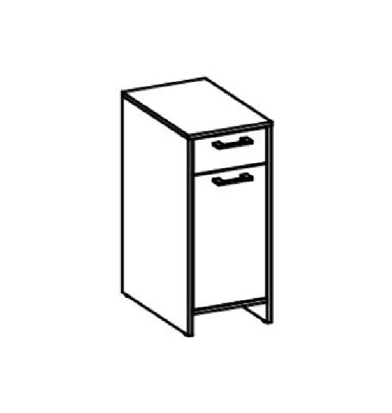 Dolní koupelnová skříňka AUDREY se hodí do všech moderních koupelen. Součástí jsou dvířka a šuplík na kuličkových pojezdech.