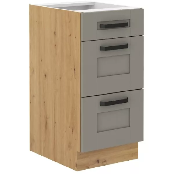 Kuchyňská skříňka se šuplíky LAILI - šířka 40 cm, světle šedá / dub artisan
