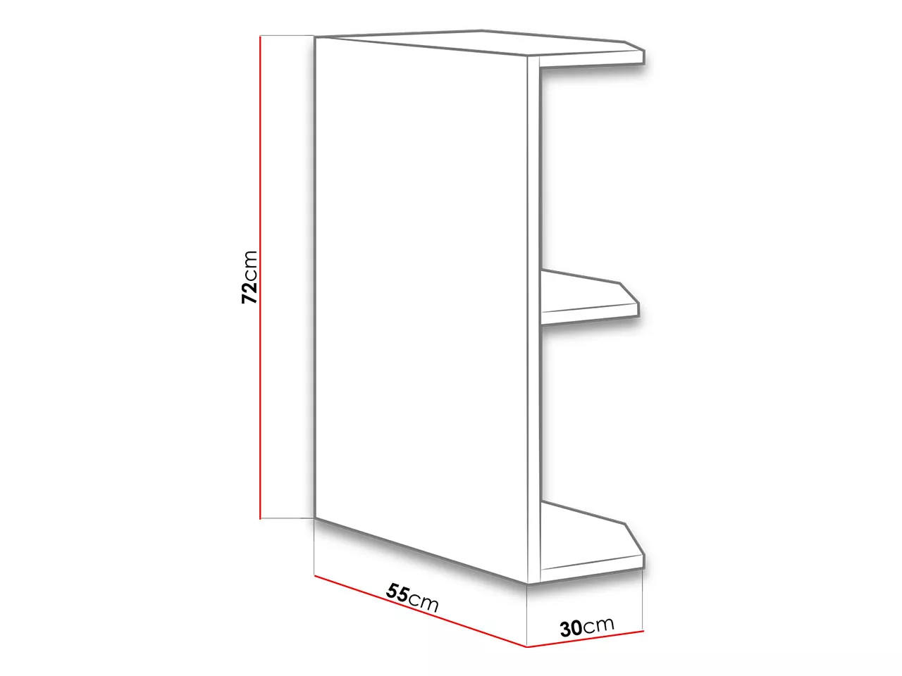 Dolní rohová kuchyňská skříňka ZHILAN je vybavena symetrickými otevřenými policemi a usnadňuje jak uložení kuchyňského nádobí, tak vystavení doplňků či dekorací. Úzká kuchyňská skříňka je díky svým kompaktním rozměrům také skvělým způsobem, jak využít volný prostor na konci linky.
