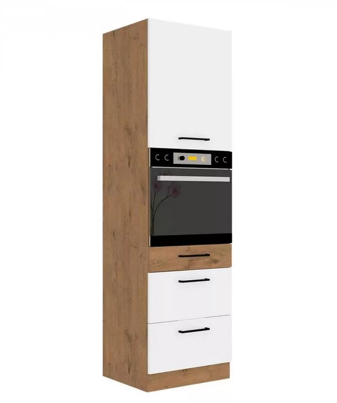 Vysoká skříňka 60 cm na vestavnou troubu ZHILAN 1 - dub lancelot / lesklá bílá