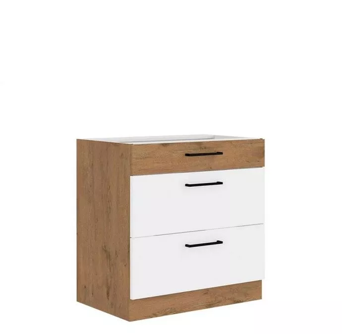 Dolní šuplíková kuchyňská skříňka 80 cm ZHILAN - dub lancelot / lesklá bílá