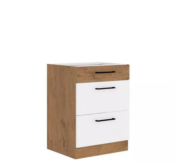 Dolní šuplíková kuchyňská skříňka 60 cm ZHILAN - dub lancelot / lesklá bílá