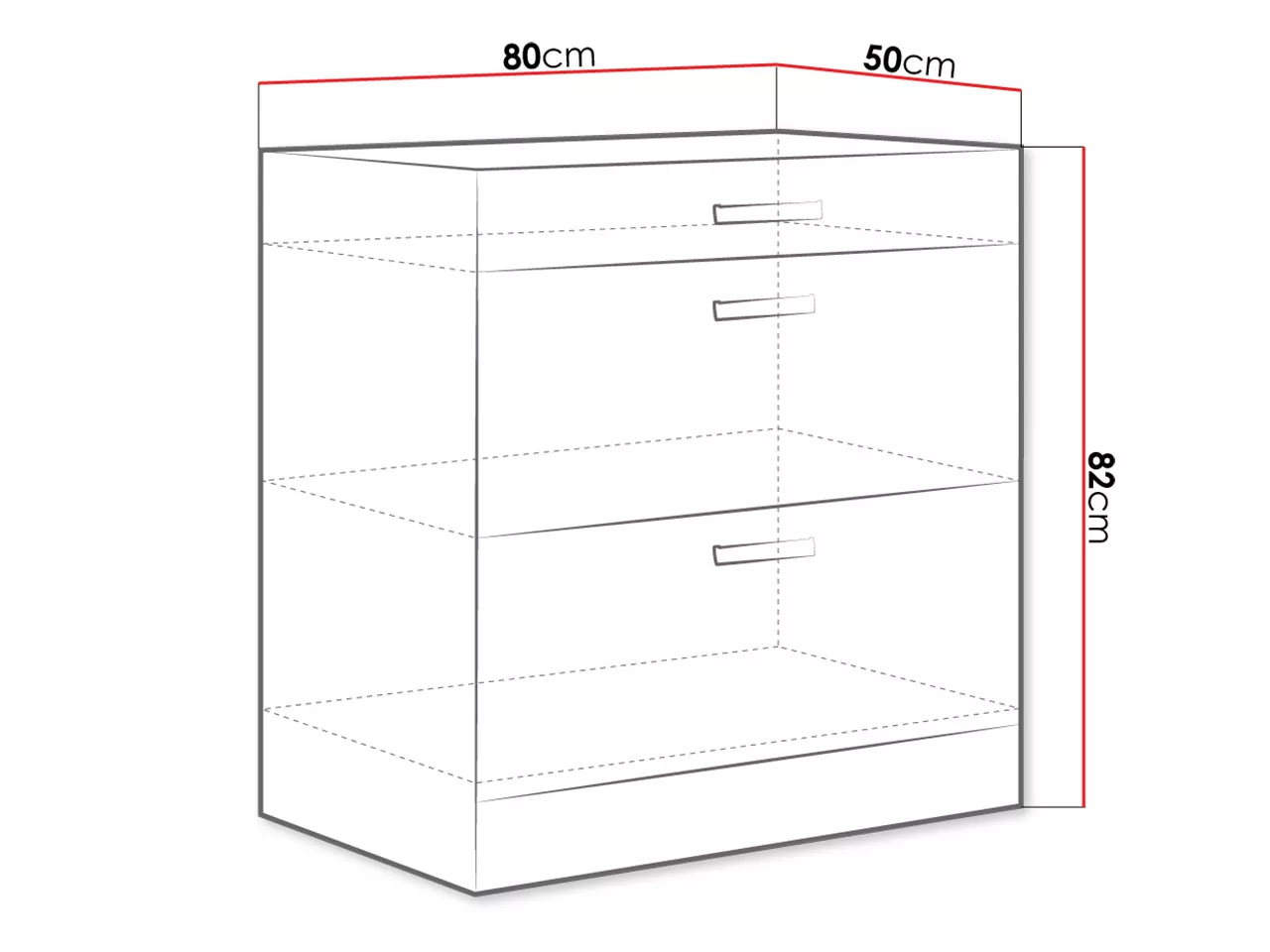 - skříňka je kompatibilní s horní deskou o šířce 80 cm