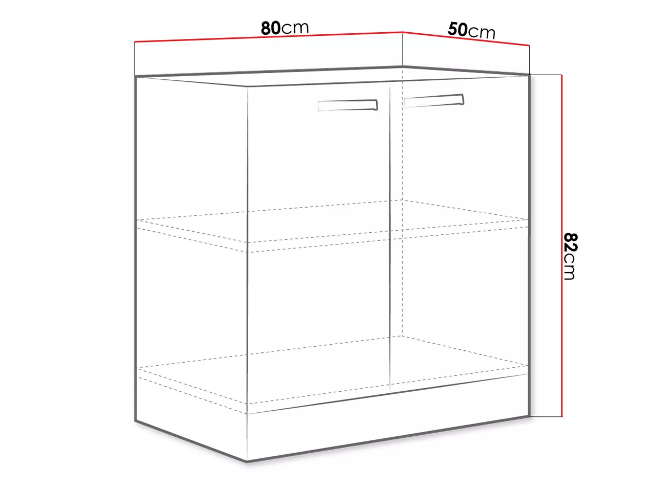 - skříňka je kompatibilní s horní deskou o šířce 80 cm