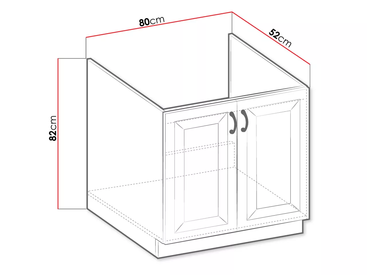 - skříňka je kompatibilní s horní deskou o šířce 80 cm