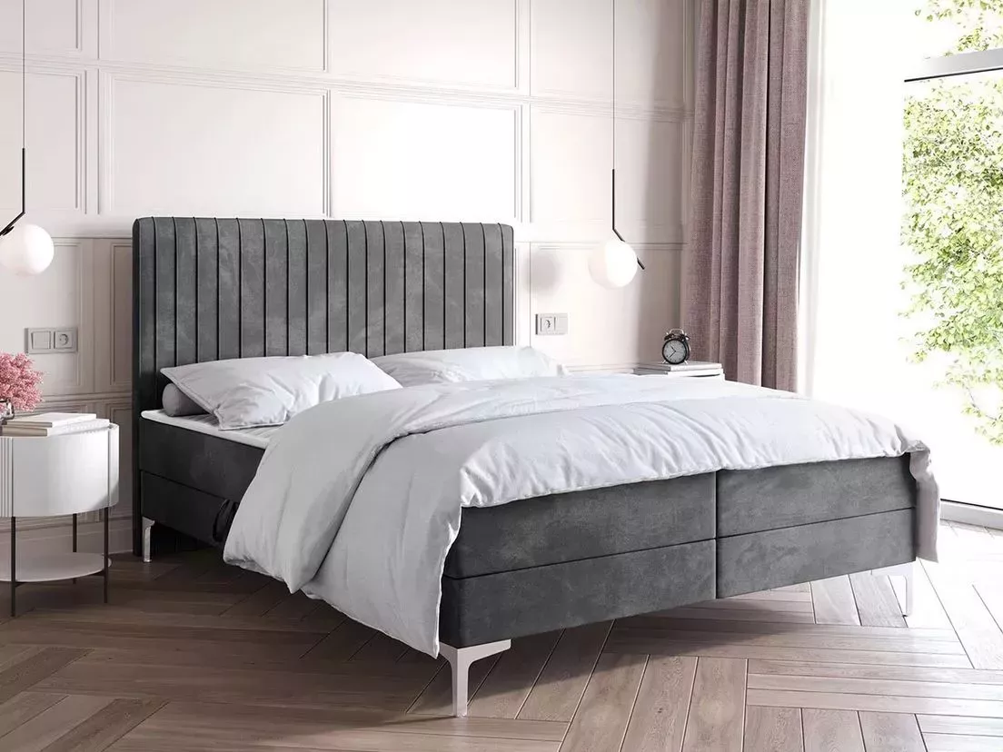 Kontinentální postel 140x200 HACINA s úložným prostorem - šedá