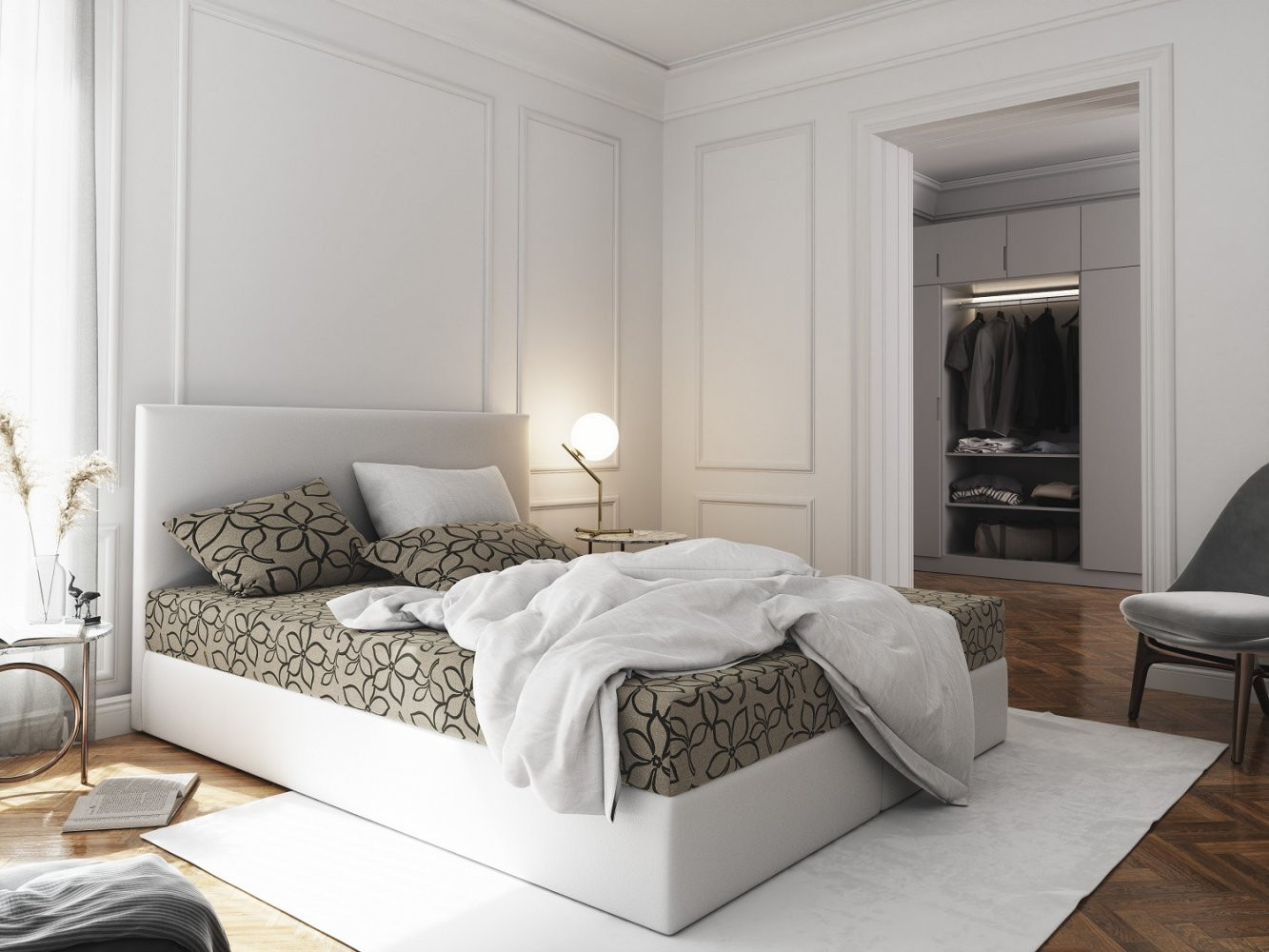 Součástí postele je zabudovaná matrace a úložný prostor. Topper k dokoupení naleznete v sekci Doporučujeme přikoupit.