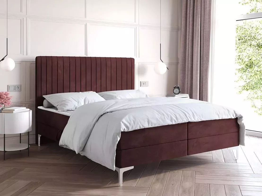 Kontinentální postel 160x200 HACINA s úložným prostorem na vysokých nožkách vnese do vaší ložnice vzdušnost a komfort. Vysoké, elegantně prošívané čelo poskytuje pohodlnou oporu při čtení nebo odpočinku.