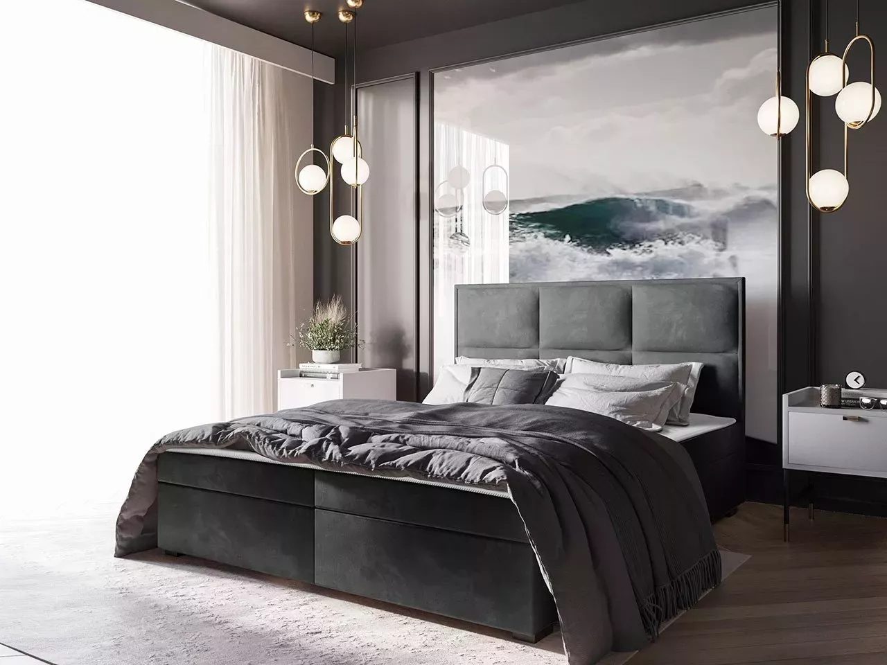Kontinentální postel 180x200 MAHERA se hodí do všech moderních ložnic a je stvořená pro kvalitní odpočinek. Elegantně prošívané čalouněné čelo zamezí poškrábání a zašpinění zdi. Postel rovněž disponuje úložným prostorem.