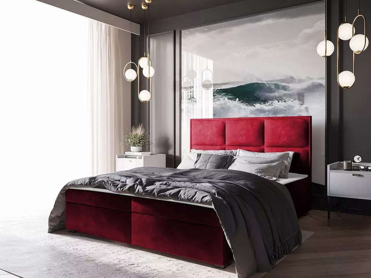 Kontinentální postel 180x200 MAHERA se hodí do všech moderních ložnic a je stvořená pro kvalitní odpočinek. Elegantně prošívané čalouněné čelo zamezí poškrábání a zašpinění zdi. Postel rovněž disponuje úložným prostorem.