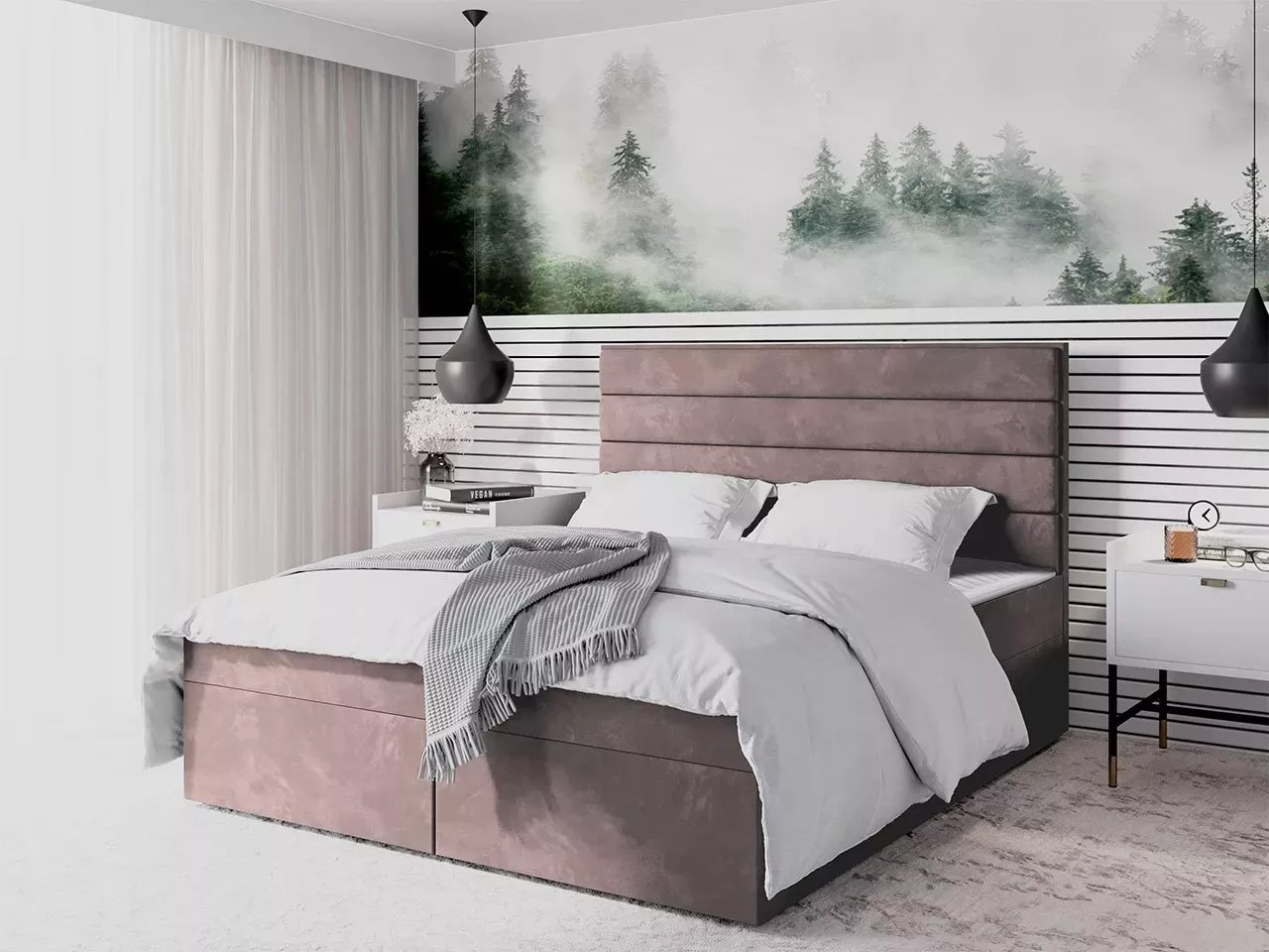 Moderní čalouněná postel 180x200 MAHERA s úložným prostorem - růžová