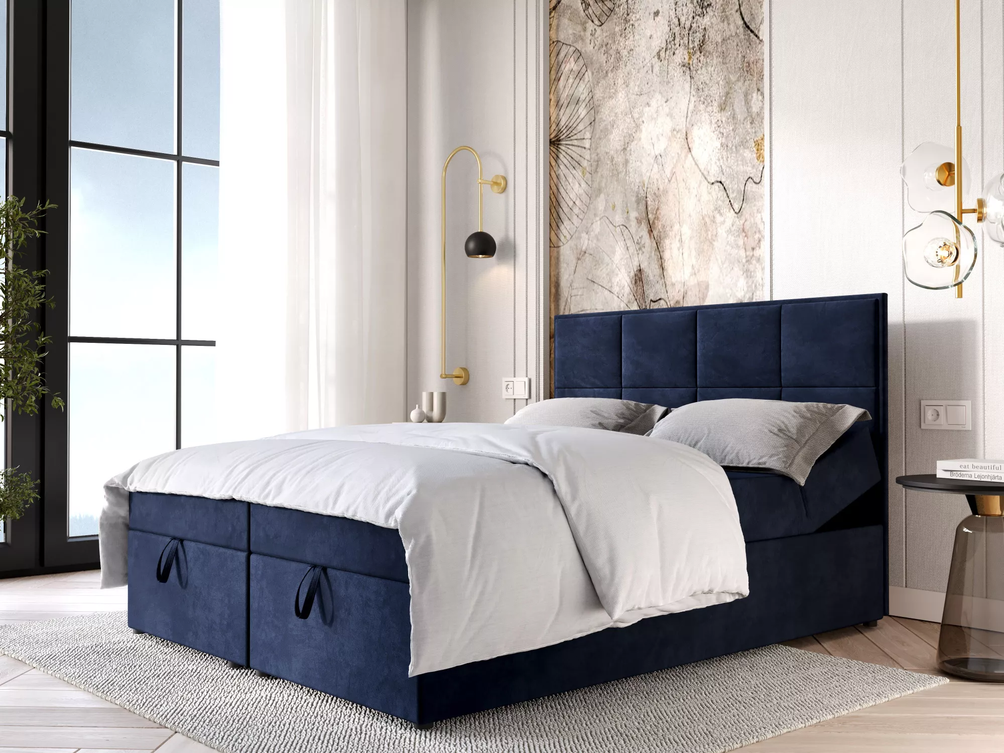 Čalouněná boxspringová postel 160x200 RAHIFA - tmavě modrá