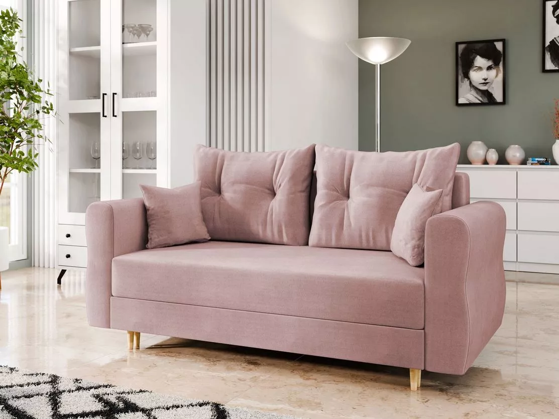 Rozkládací dvoumístná pohovka EXETER - pastelová růžová